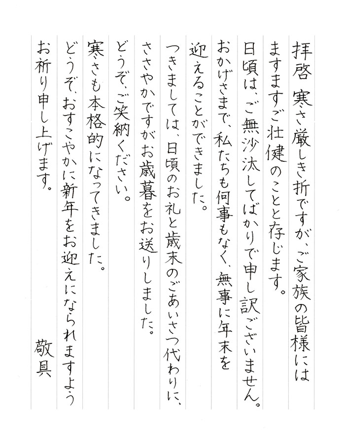 ※すべてボールペンの使用になります。ご指定があった場合のみ万年筆を使用します。